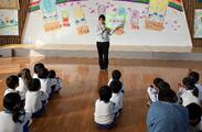 ハローイングリッシュ!! 2025/12/17 園長 年長児対象に、「ハローイングリッシュ」を実施しました。 国際交流の活動の一環で、国際交流員の方が園に来園され、英語を交えた触れ合い活動を行いました。 神経衰弱のゲームを英語で行って、サンタクロース、トナカイ、プレゼントなど、のカードがペアになると喜んだ子ども達でした。 3つの英語を覚えようと教えてくれました。「サンキュー」 「またあいましょう」 ・・・・。子ども達は楽しい雰囲気の中で英語に触れることができました。 プロジェクターでアメリカのクリスマスの様子を見せてくれて文化を知ることができました。 ツリーの下に、プレゼントに並べられていることを知り、煙突じゃないのか・・・!と驚いていました。 クラスに戻ってからは、世界地図を見て、「アメリカはここだね!!」と言うなど、興味を持つ活動になりよかったです。