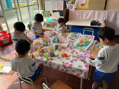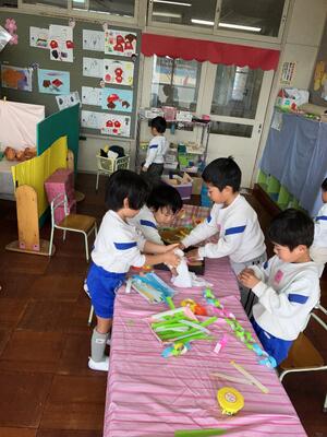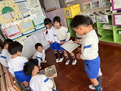 年長児さんに喜んでもらおうと、しばらく前から年中児が中心となり、準備を進めてきました。